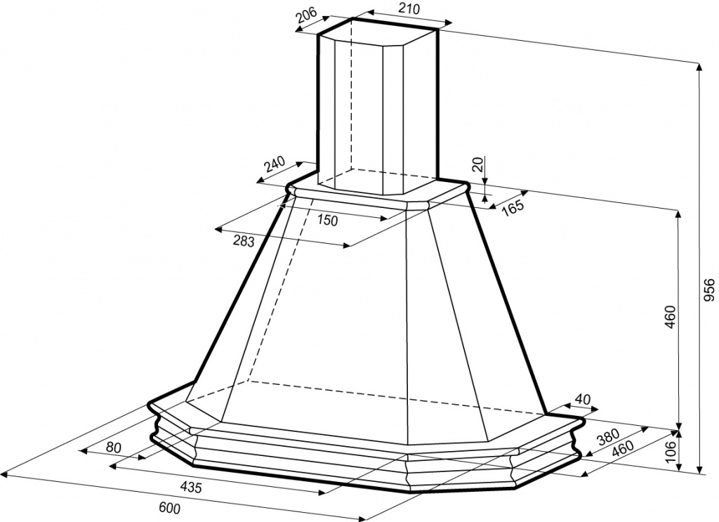 - Дополнительная информация Декоративный багет не входит в стоимость вытяжки. Производительность модели рассчитана на площадь кухни до 20 кв.м.;
