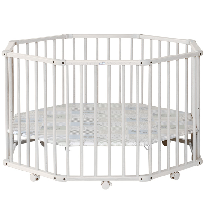 Детский манеж Geuther Octo-Parc Plus белый (дно - бело-бежевое с бабочками и узорами) 2228+ WE 004