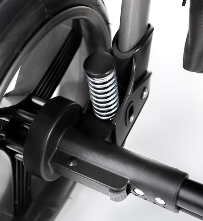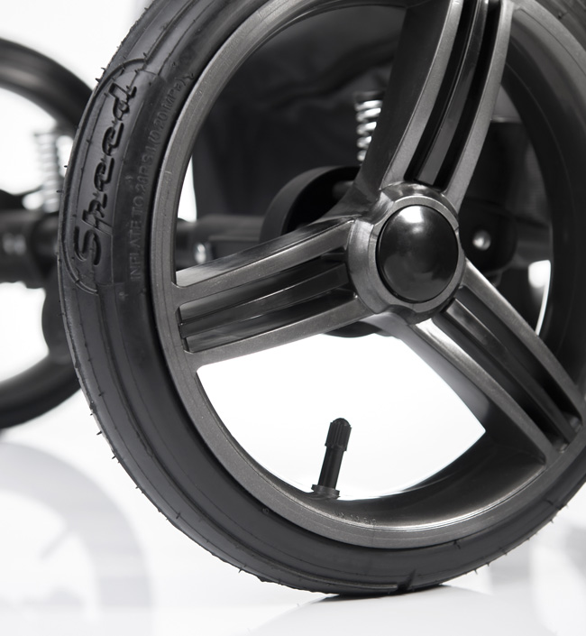 Надувные бескамерные шины и мягкая подвеска (с регулировкой) на задних колесах обеспечат плавность хода.