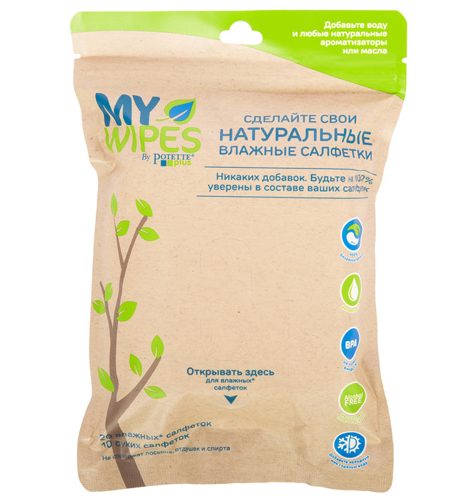 Детские одноразовые многослойные салфетки Potette Plus My Wipes из целлюлозы