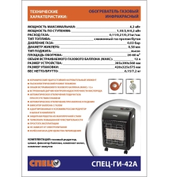 Обогреватель газовый инфракрасный 4.2 кВт, 3 положения