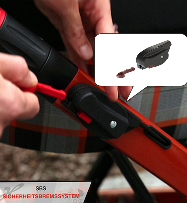 Простой, но при этом надежный механизм предотвратит возможные несчастные случаи при потере контроля над коляской.