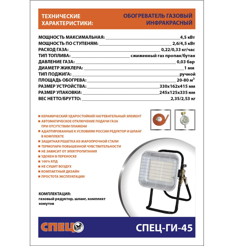Обогреватель газовый инфракрасный 4.5 кВт