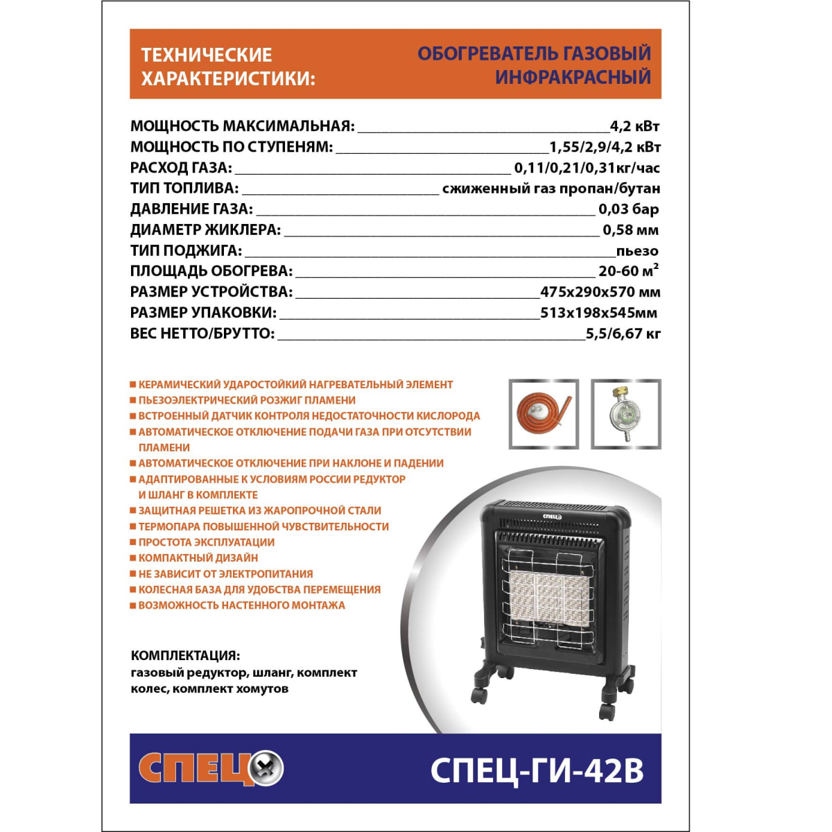 Обогреватель газовый инфракрасный 4.2 кВт, 2 положения