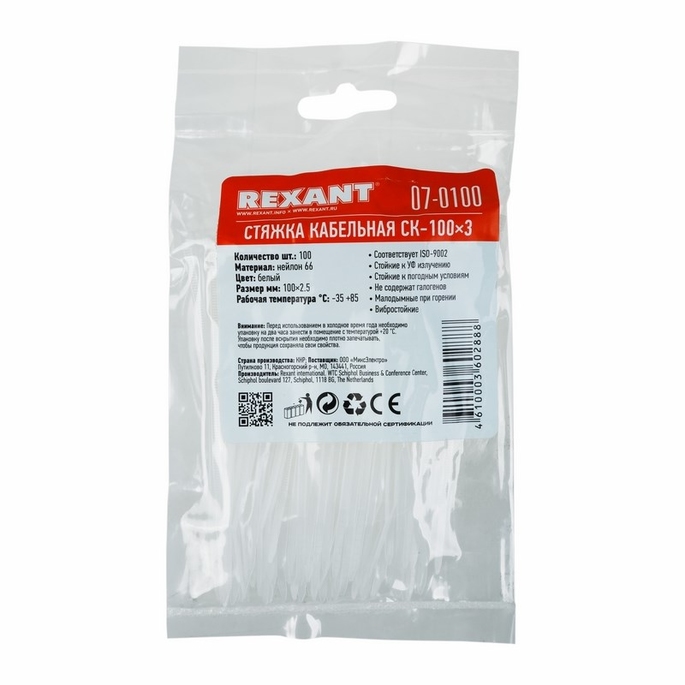 - Класс воспламеняемости UL 94 класс V-2 (самозатухающий)