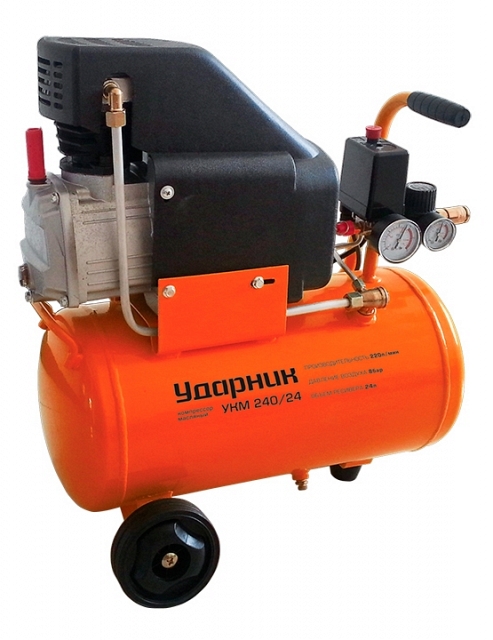 Высококачественный масляный компрессор бытового класса и начального уровня мощности. Данная модель Ударник УКМ 240/24 отличается компактными размерами, достаточно низким уровнем шум и очень высоким рабочим ресурсом, что делает устройство идеальным инструментом для большинства нетребовательных частных мастеров для применения его на даче, в гараже или частной мастерской.
