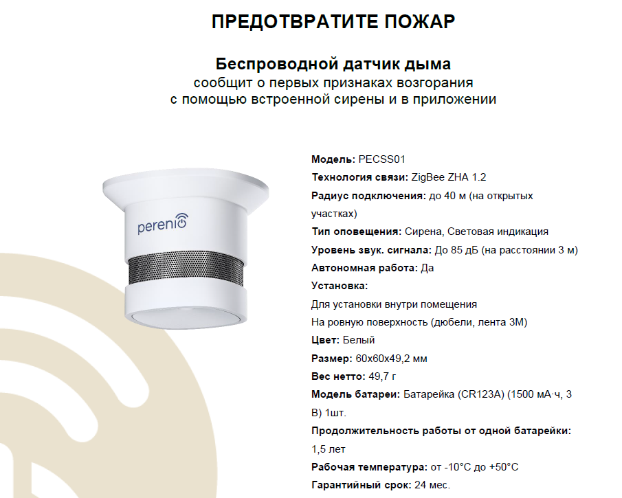 - Дополнительное описание Фотоэлектрический датчик дыма PECSS01 распознает малейшие признаки пожара, он издает сигнал тревоги, и отправляет уведомление на телефон владельца помещения. Датчик крепится на потолок с помощью двусторонней клеящей ленты 3М, или саморезов.