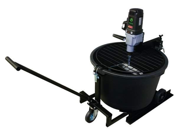 Прорезиненные колеса позволяют легко перекатывать электрооборудование по месту проведения работ, а также подвозить готовый раствор непосредственно к рабочему месту мастера;