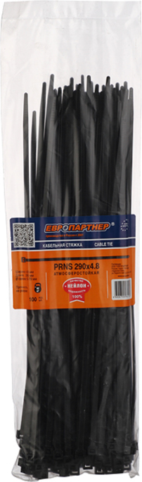 Стяжка для кабеля Европартнер 290 х 4,8 нейлон черная (100 шт.)