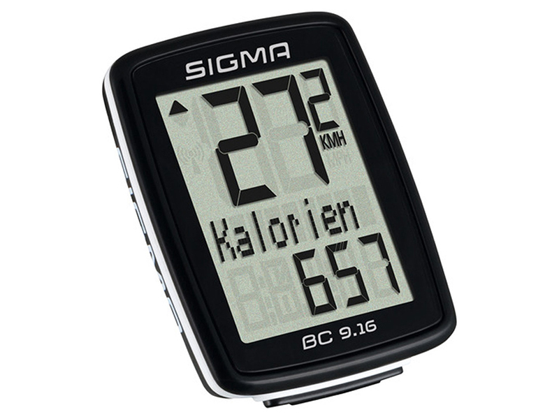 Велокомпьютер Sigma BC 9.16 в моноблочном влагозащищённом корпусе. Оснащен матричным информативным ЖК-дисплеем, на котором во время движения отображаются одновременно две функции.