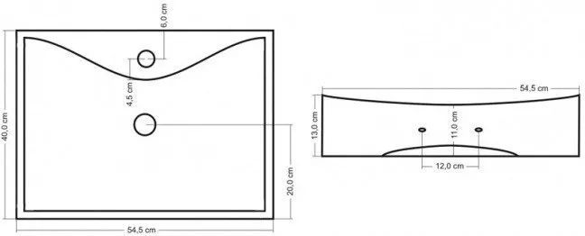 Умывальник на кронштейны, на столешницу, ширина 54.5 см, длина 40.5 см, форма: прямоугольная, санитарная керамика, отверстие под смеситель.