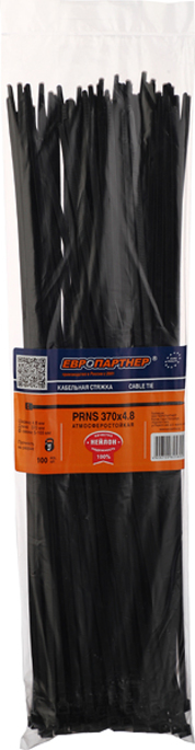 Стяжка для кабеля Европартнер 370 х 4,8 нейлон черная (100 шт.)