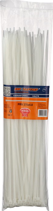 Стяжка для кабеля Европартнер 370 х 4,8 нейлон белая (100 шт.)