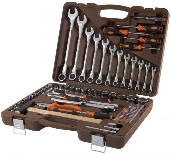 • Наличие в наборе Удлинители 1/4", Удлинители 1/2", Трещотка 1/4", Трещотка 1/2", Торцевые головки 1/4", Торцевые головки 1/2", Пассатижи, Отвертки, Отвертка под биты, Молоток, Комбинированные ключи, Индикаторы, Биты