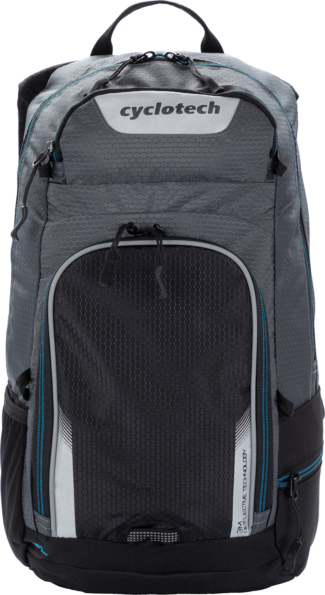 Практичный велосипедный рюкзак от Cyclotech. В модели специальные спортивные лямки и отсек для питьевой системы. Шланг можно провести на лямку рюкзака. Для удобства предусмотрены крепежи для шлема и заднего фонаря. Светоотражающий элемент сделает велосипедиста заметнее в темноте. Специальный чехол от дождя идет в комплекте.