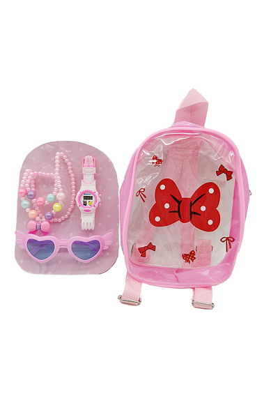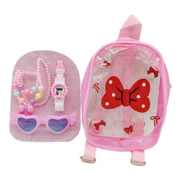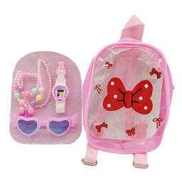 Игровой набор для девочек в рюкзачке "Принцесса" включает в себя ожерелье из ярких бусин, розовый браслет, темные очки и игрушечные часы. Все это упаковано в мягкий, прозрачный рюкзачок с красивым принтом, который девочка сможет брать с собой куда угодно! Набор станет отличным подарком для маленьких принцесс!