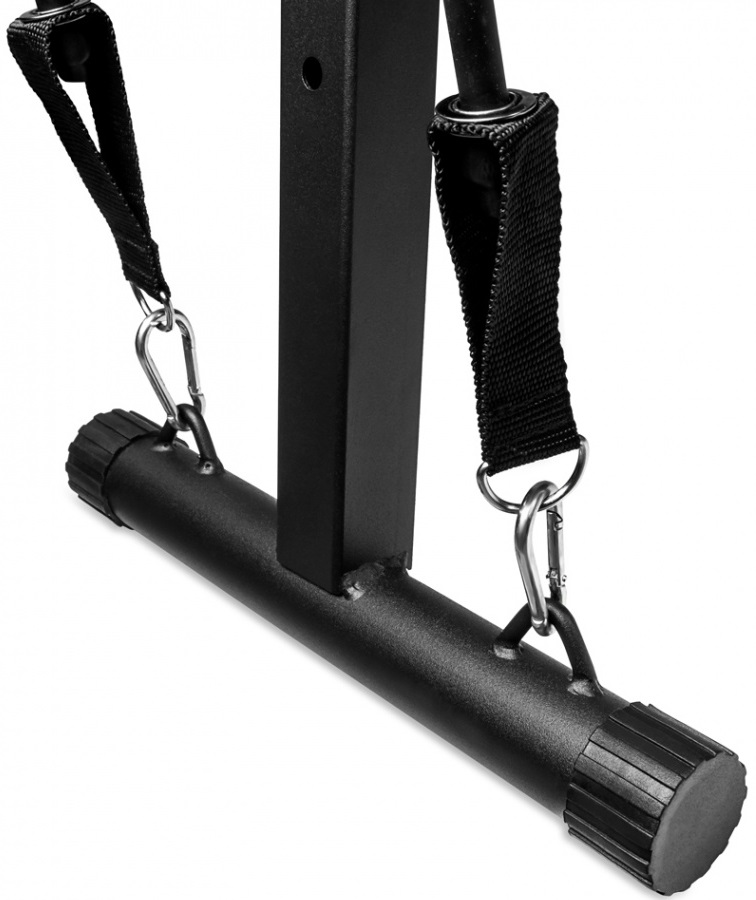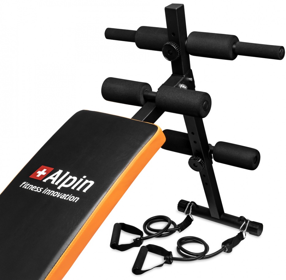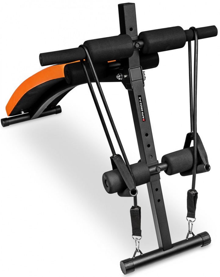 Скамья для пресса с эспандерами и упорами для отжимания. Упражнения: пресс, тренировка рук и плеч. Угол наклона регулируется по высоте в 4 положениях. Скамья имеет складную конструкцию что позволит удобно хранить ее в ограниченном пространстве. Максимальная нагрузка 120 кг. Размеры: 135x57x76 см.