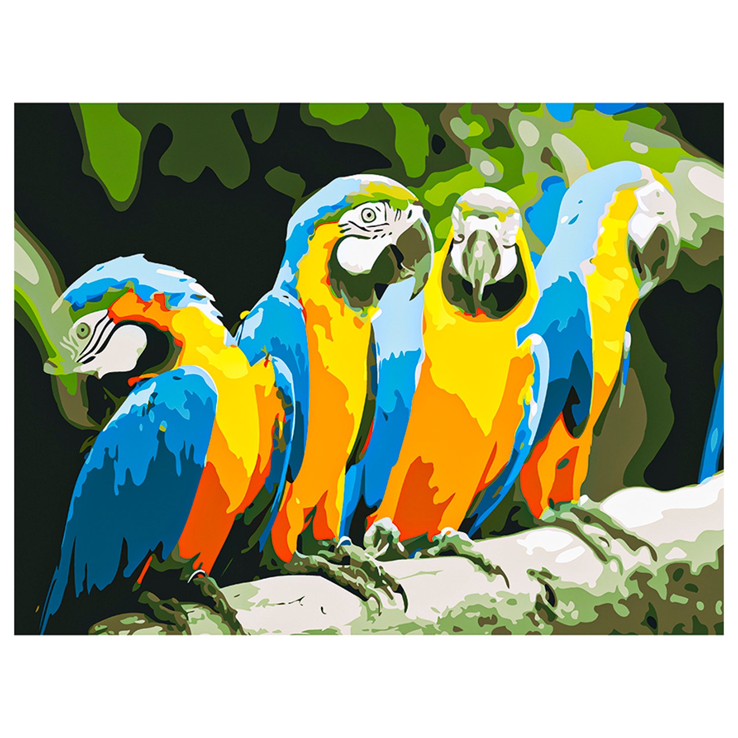 Картина по номерам 30х40 Рыжий кот Яркие попугаи на ветке Х-3344