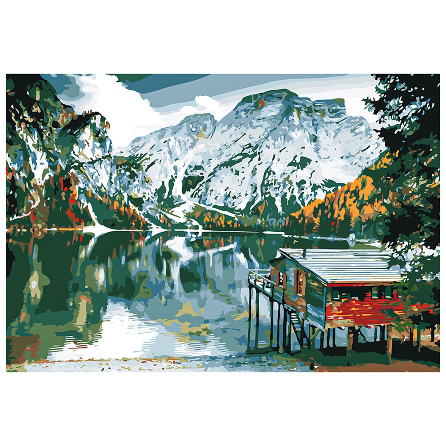 Картина по номерам 30х40 Рыжий кот Дом у заснеженных гор Х-8091