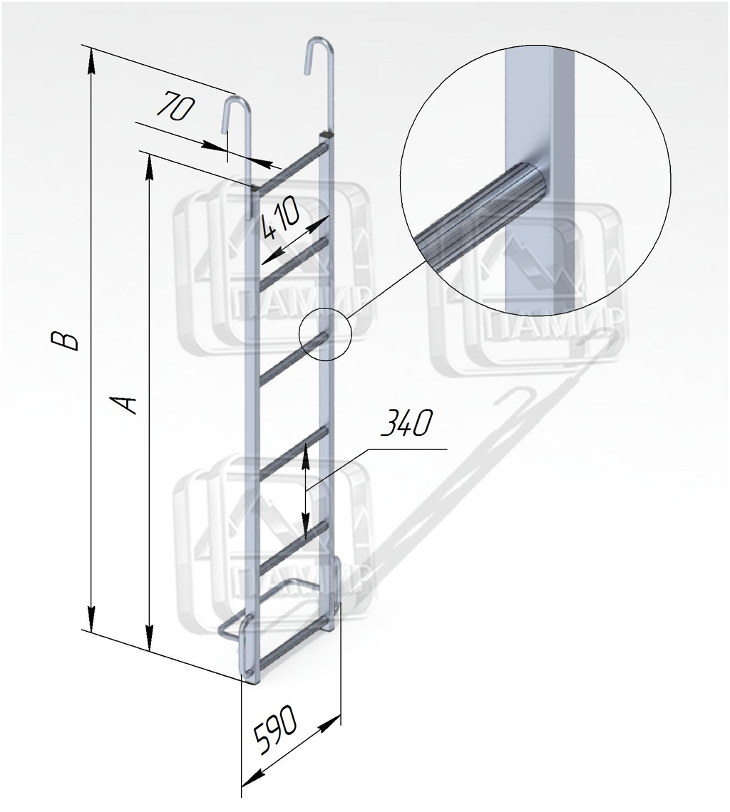 Лестница навесная алюминиевая Памир ЛНА-3.1ак