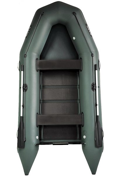 Лодка надувная моторная. Четырехместная. Три гермоотсека. Дно эластичное + слань днищевая/slat flooring. Грузоподъемность 500 кг. Вес комплекта 38 кг.