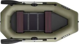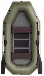 Двухместная надувная гребная лодка. Наличие трех днищевых сланей. Вес лодки вместе с веслами составляет 18 кг. Грузоподъемность 197 кг. Два гермоотсека, армированный ПВХ материал. Малая осадка судна позволяет пересекать мелководье и заросшие участки водоемов. Плотность материала: 800 г/м2. Диаметр борта: 32 см.