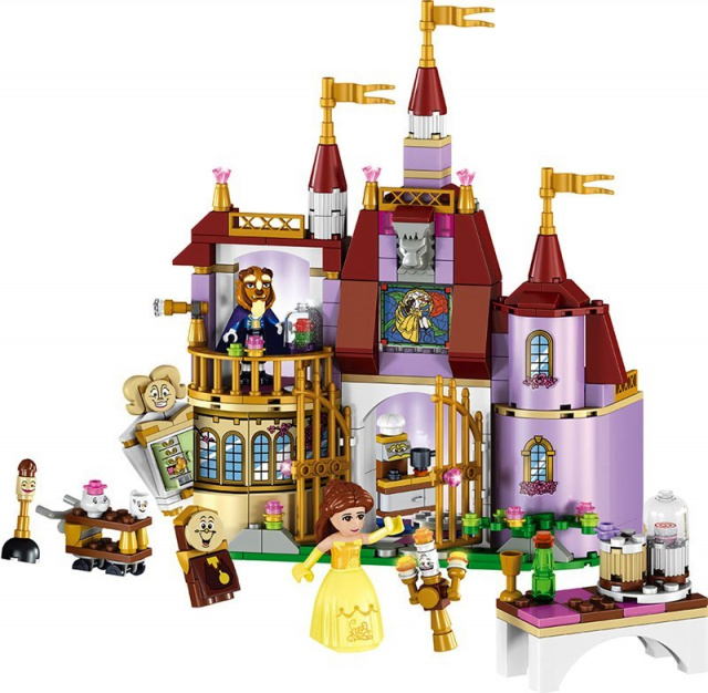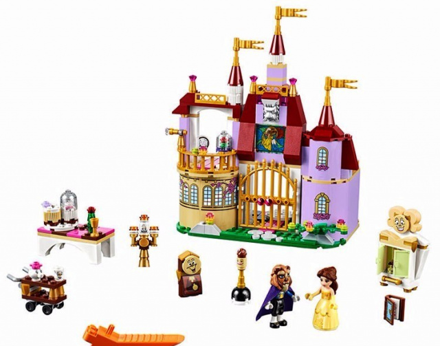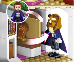 В наборе 2-этажный Заколдованный Замок с бальным залом, кухней, столовой, спальней и балконом. На первом этаже есть бальный зона с люстрой, витражами и танцполом, библиотека, столовая со столом который может танцевать и портрет прекрасного принца, кухня с тележкой для миссис Поттс и Чипа. На втором этаже находится спальня с кроватью и лампой, балкон комнаты с зачарованной розой.