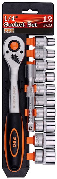 - Наличие в наборе Удлинители 1/4", Трещотка 1/4", Торцевые головки 1/4"