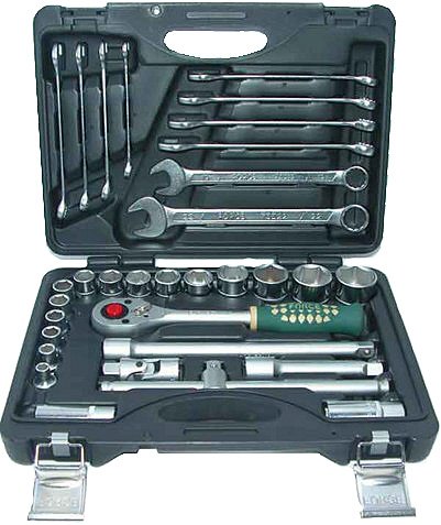 - Наличие в наборе Удлинители 1/2", Трещотка 1/2", Торцевые головки 1/2", Комбинированные ключи, Головки свечные