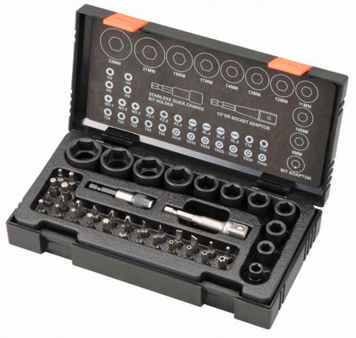 - Наличие в наборе Торцевые головки 1/2", Биты