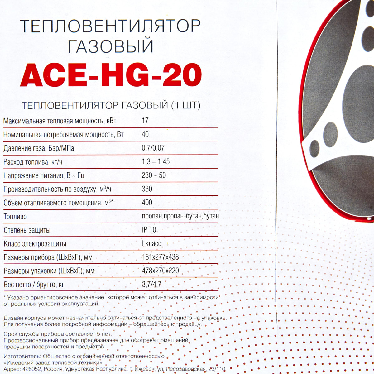 Пушка тепловая газовая AC Electric ACE-HG-20
