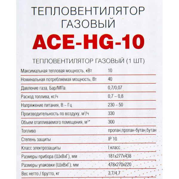 Пушка тепловая газовая AC Electric ACE-HG-10