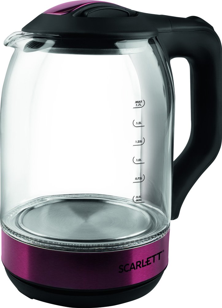 Электрический чайник, мощность 1800 Вт, объем 1.7 л, материал корпуса металл/стекло, нагревательный элемент закрытая спираль, дополнительные функции: индикация включения, подставка с вращением на 360°.