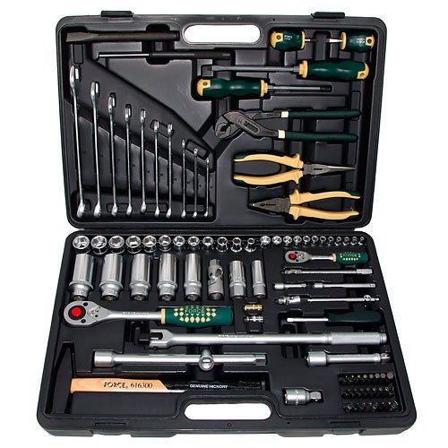 - Наличие в наборе Удлинители 1/4", Удлинители 1/2", Трещотка 1/4", Трещотка 1/2", Торцевые головки 1/4", Торцевые головки 1/2", Пассатижи, Отвертки, Отвертка под биты, Молоток, Комбинированные ключи, Зубило, Зажимные клещи, Длинногубцы, Головки свечные, Биты