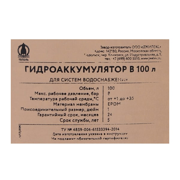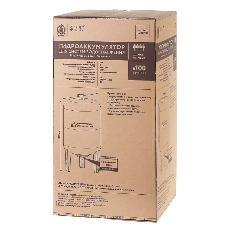 Тип продуктаГидропневматические емкостные сосуды (гидроаккумуляторы), Бак для воды