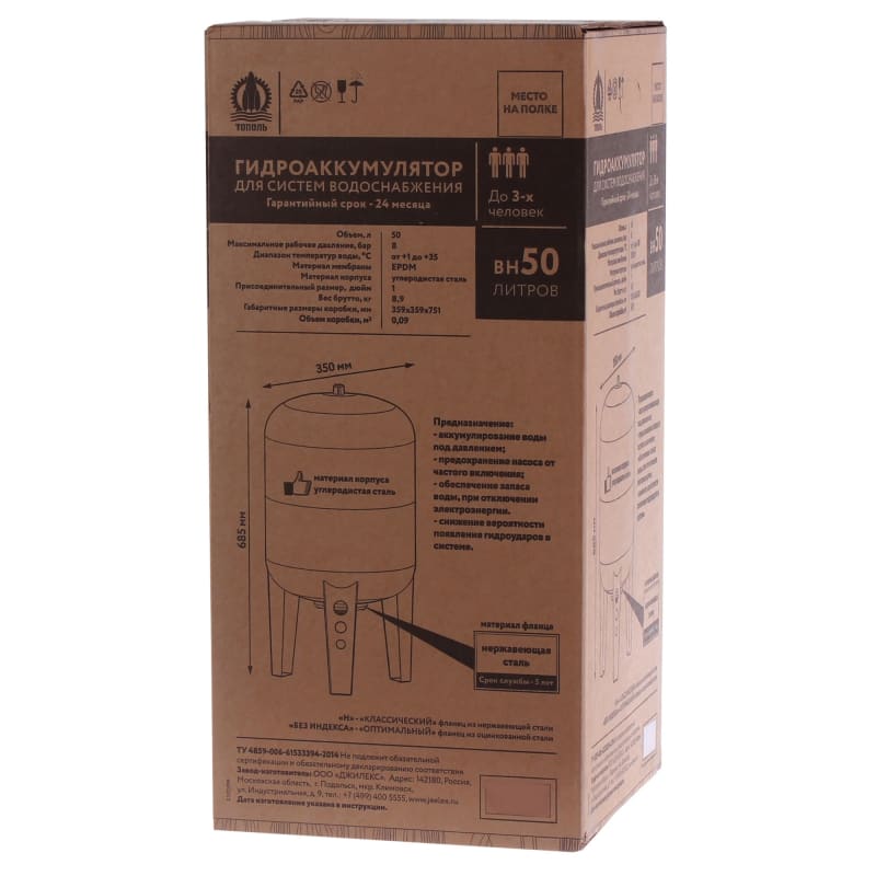 Тип продуктаГидропневматические емкостные сосуды (гидроаккумуляторы), Бак для воды