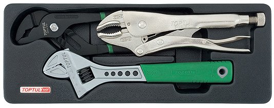 - Наличие в наборе Ключ разводной, Зажимные клещи
