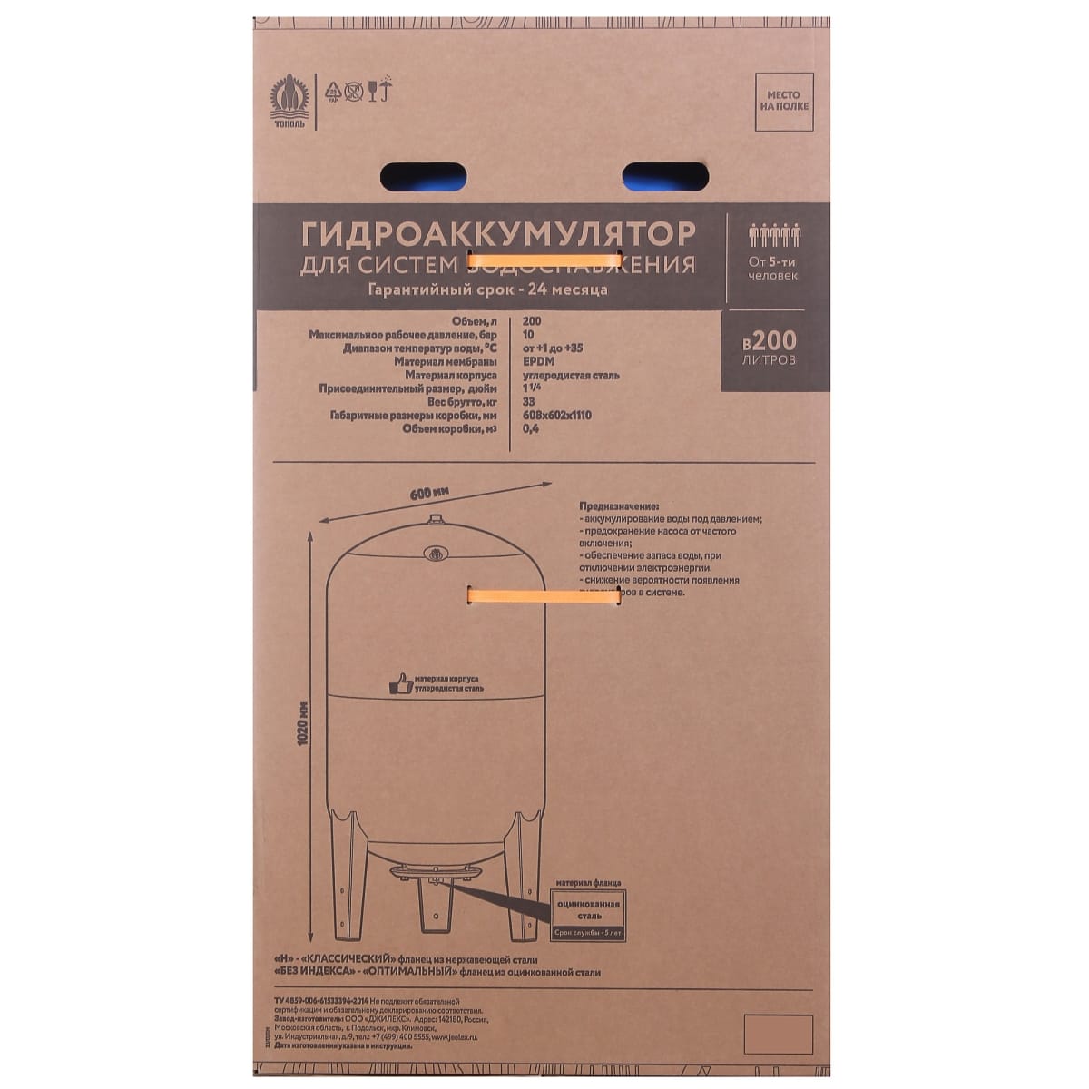 Модель продуктаГИДРОАККУМУЛЯТОР 200Л ВЕРТ СТАЛ ФЛАНЕЦ