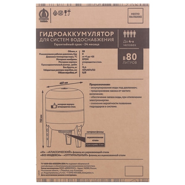 Тип продуктаГидропневматические емкостные сосуды (гидроаккумуляторы), Бак для воды