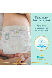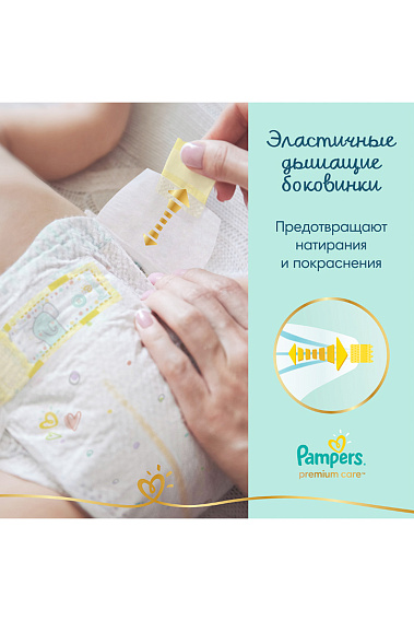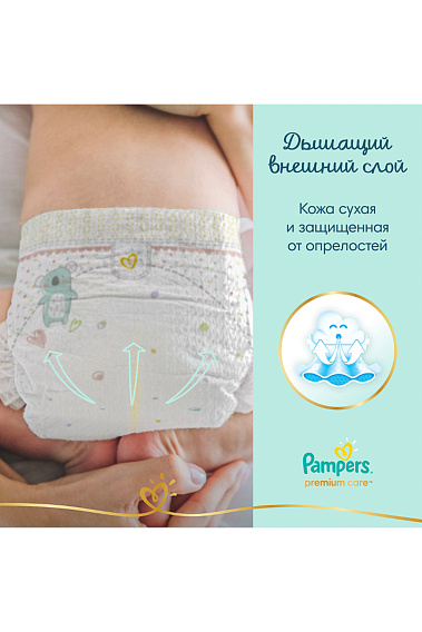 Окружите вашего малыша идеальным комфортом и защитой с подгузниками Pampers Premium Care. Это мягкие, как пух, дышащие и отлично впитывающие влагу и жидкий стул подгузники. Их уникальный верхний слой создан специально для идеального комфорта и защиты кожи малыша.