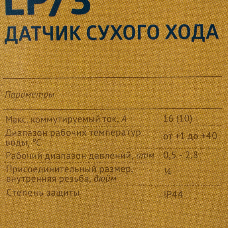 Применение продуктаПрименяется в автономных системах водоснабжения для автоматического выключения поверхностных, скважинных насосов, насосных станций при отсутствии воды в системе. Защита по "сухому ходу"