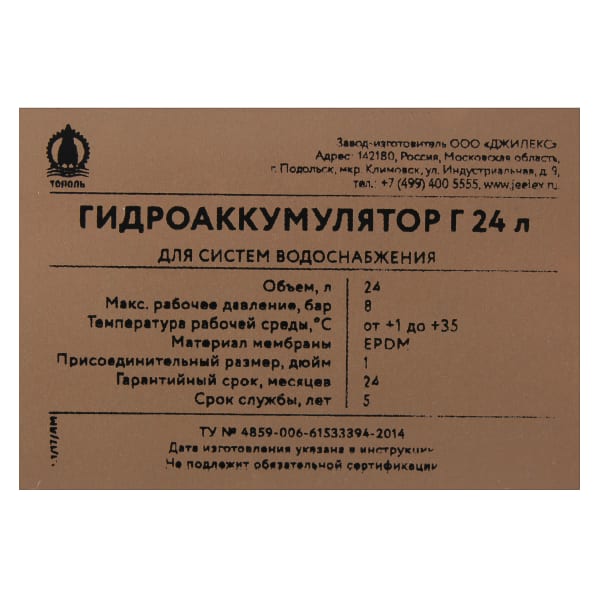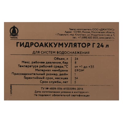 Тип продуктаГидропневматические емкостные сосуды (гидроаккумуляторы), Бак для воды