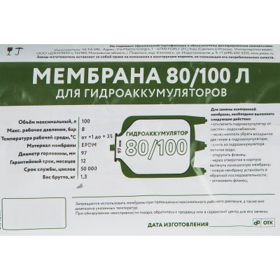 • Модель продукта МЕМБРАНА 80/100Л, ГОРЛОВИНА 97ММ