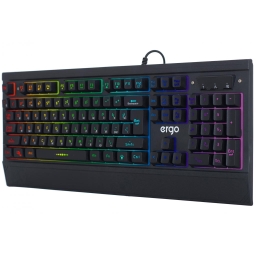 Ігрова клавіатура ERGO KB-640 - все, що потрібно справжньому геймеру. Стильна і ергономічна, вона займає оптимальний простір на ігровому столі, а спеціальна конструкція дозволяє зручно розміщувати зап'ястя, завдяки чому вони не напружуються і можна залишатися у грі ще довше. Мембранна клавіатура оснащена 104-ма клавішами, які забезпечують комфортну гру або набір тексту.