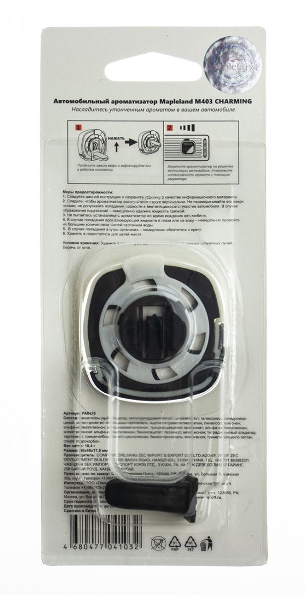 Ароматизатор д/авто MAPLELAND M403 CHARMING, M401 HONEY (комплект из 2 шт)