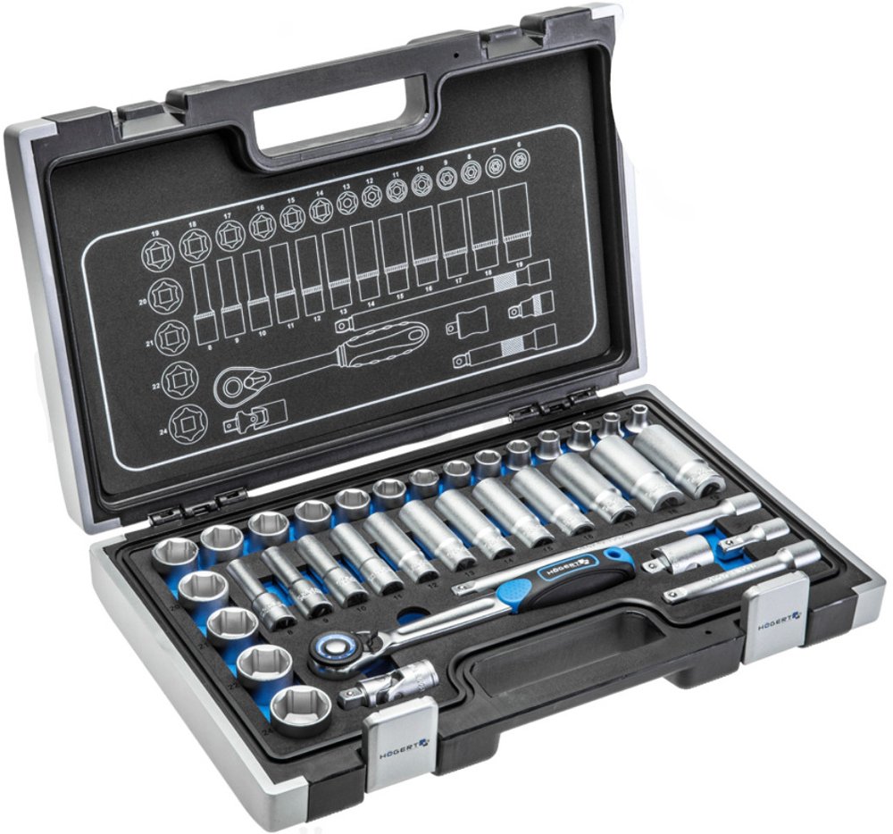 - Наличие в наборе Удлинители 3/8"; Трещотка 3/8"; Торцевые головки 3/8"