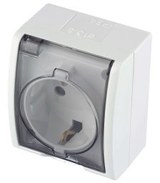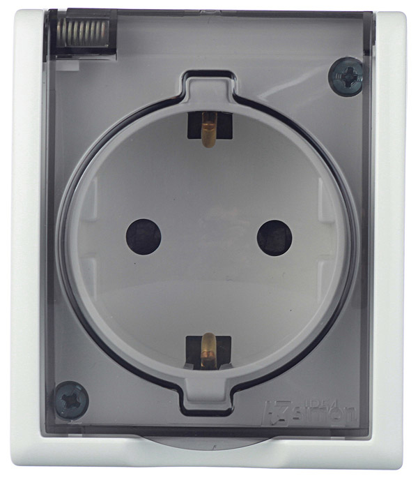 Розетка с заземлением Schuko со шторками с крышкой IP54 16А 250В S15 Aqua, белый