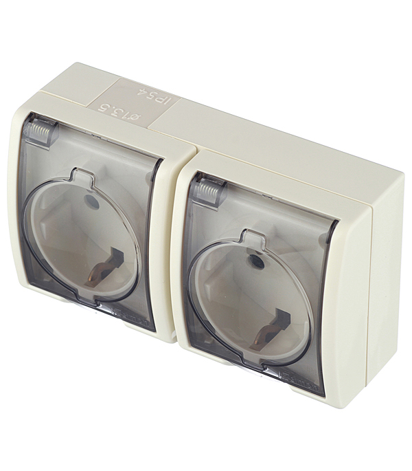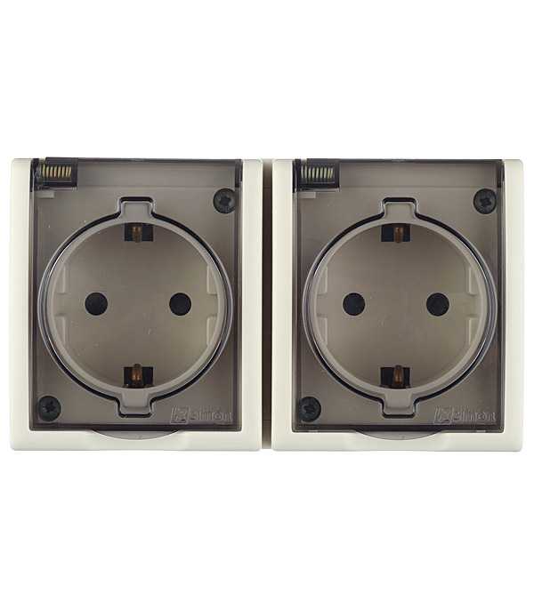 Розетка двойная с заземлением Schuko со шторками с крышкой IP54 16А 250В S15 Aqua слоновая кост