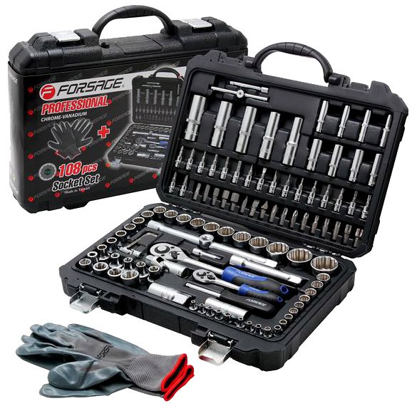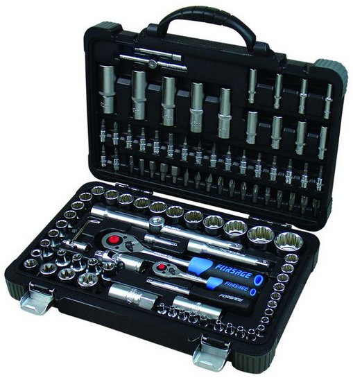- Наличие в наборе Шестигранные ключи; Удлинители 1/4"; Удлинители 1/2"; Трещотка 1/4"; Трещотка 1/2"; Торцевые головки 1/4"; Торцевые головки 1/2"; Отвертка под биты; Комбинированные ключи; Головки свечные; Биты