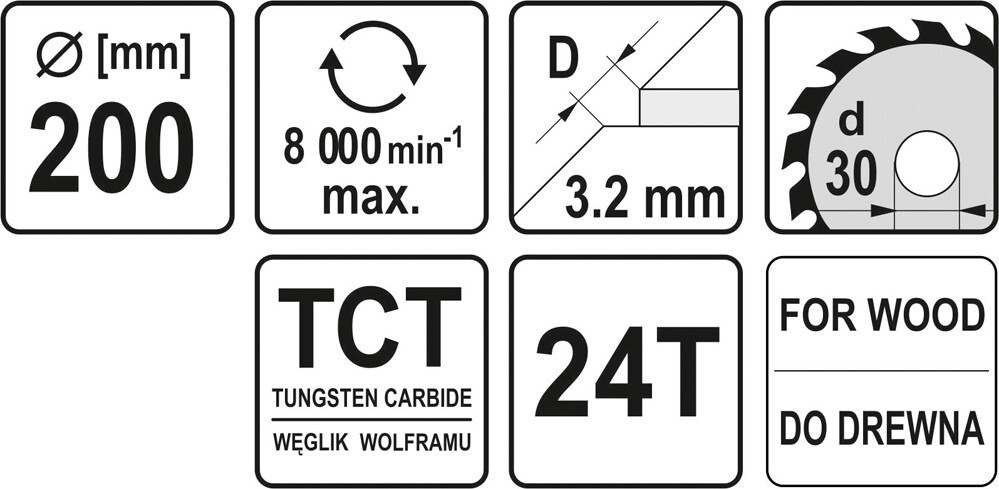 Диск пильный YATO по дереву 200х30x3.2x2.2 мм, 24 зубца (YT-6065)